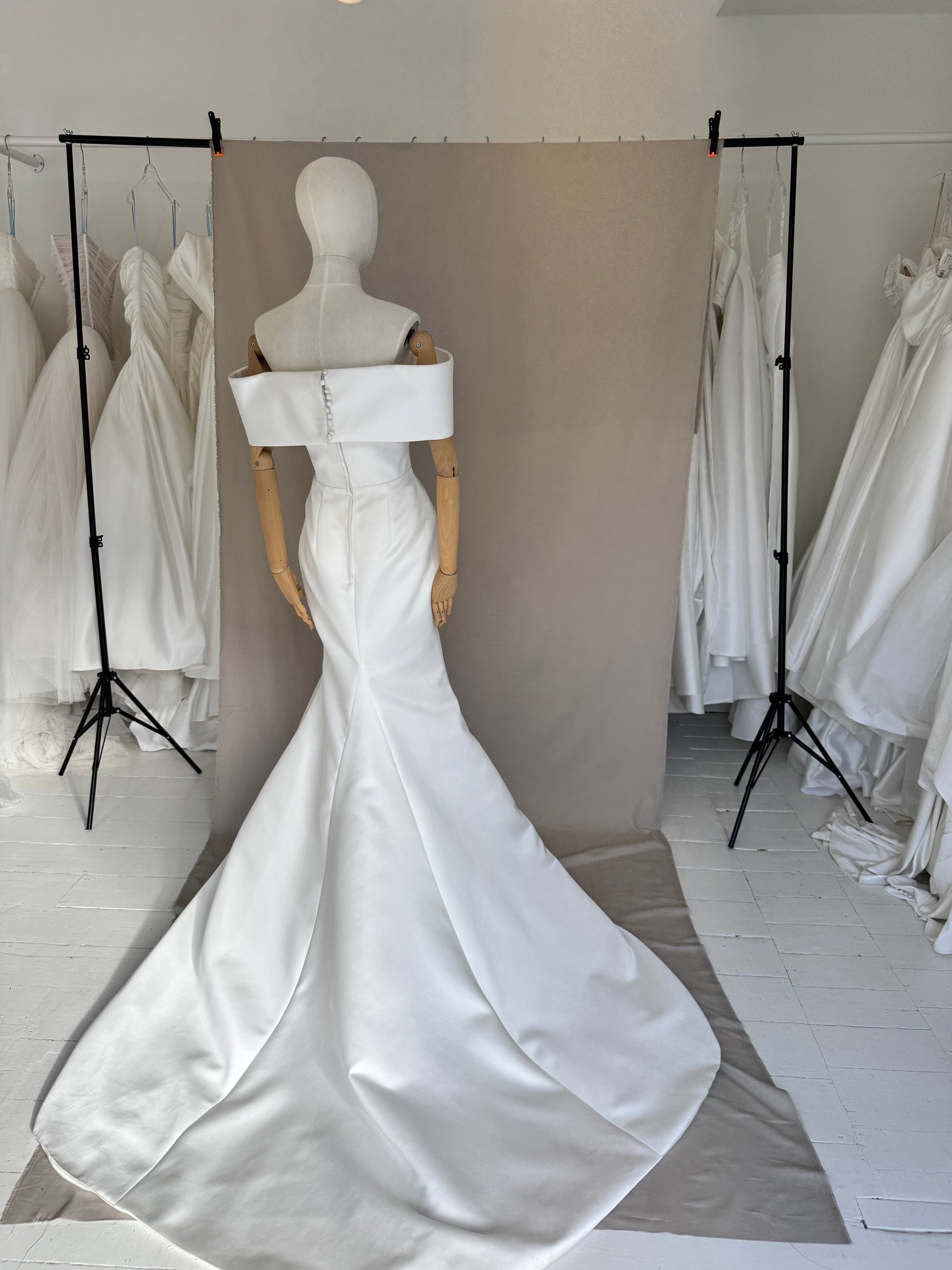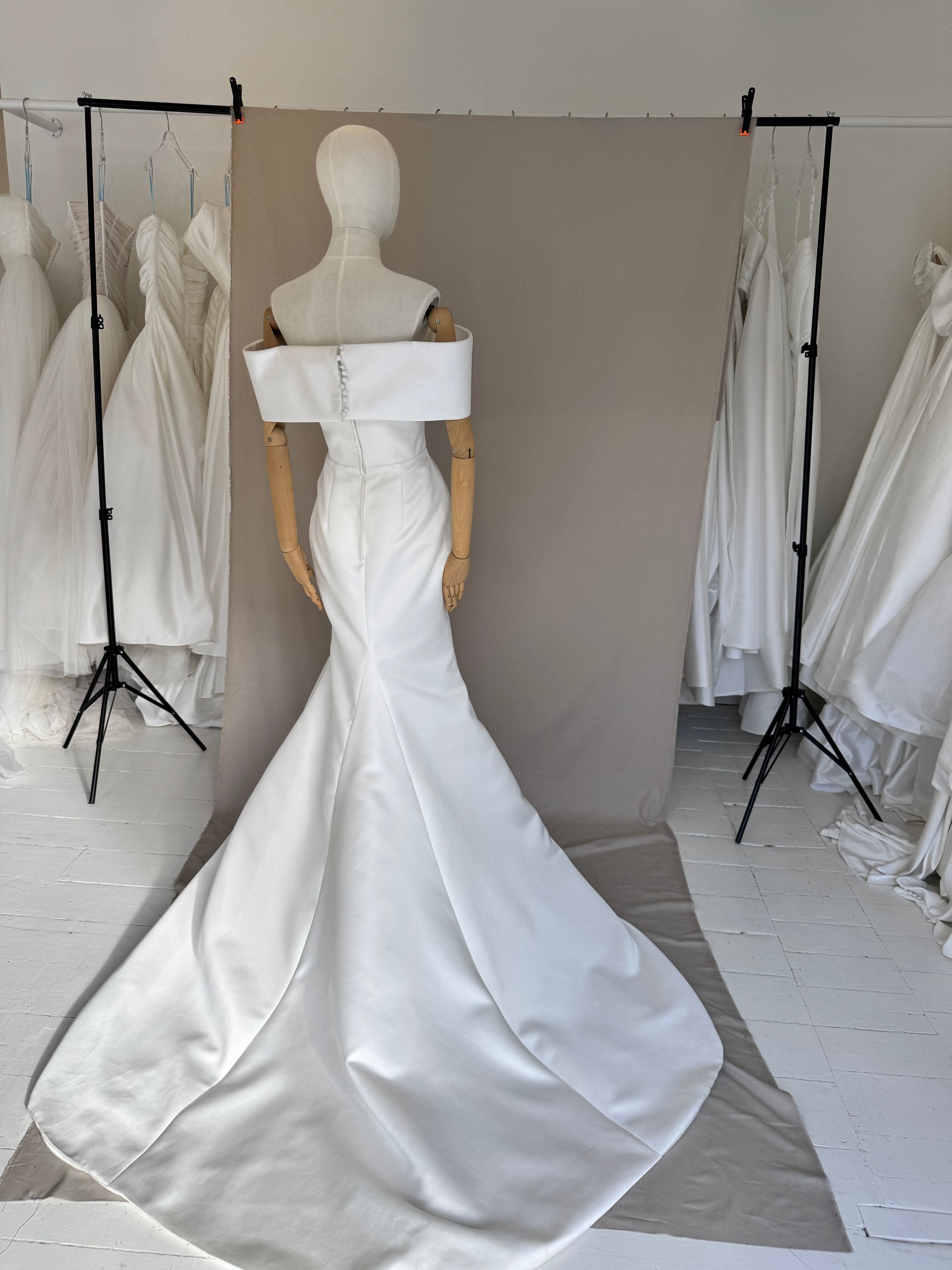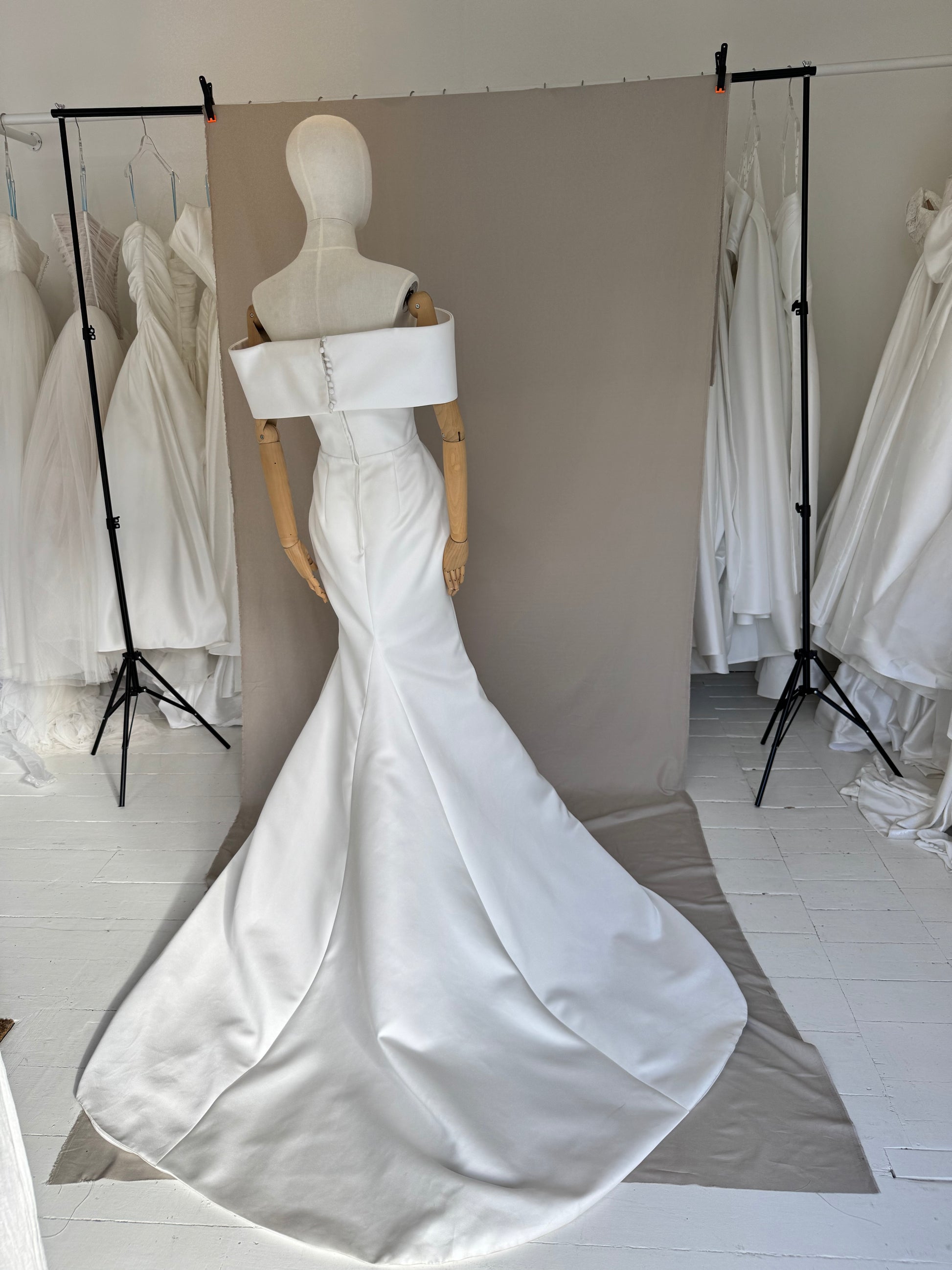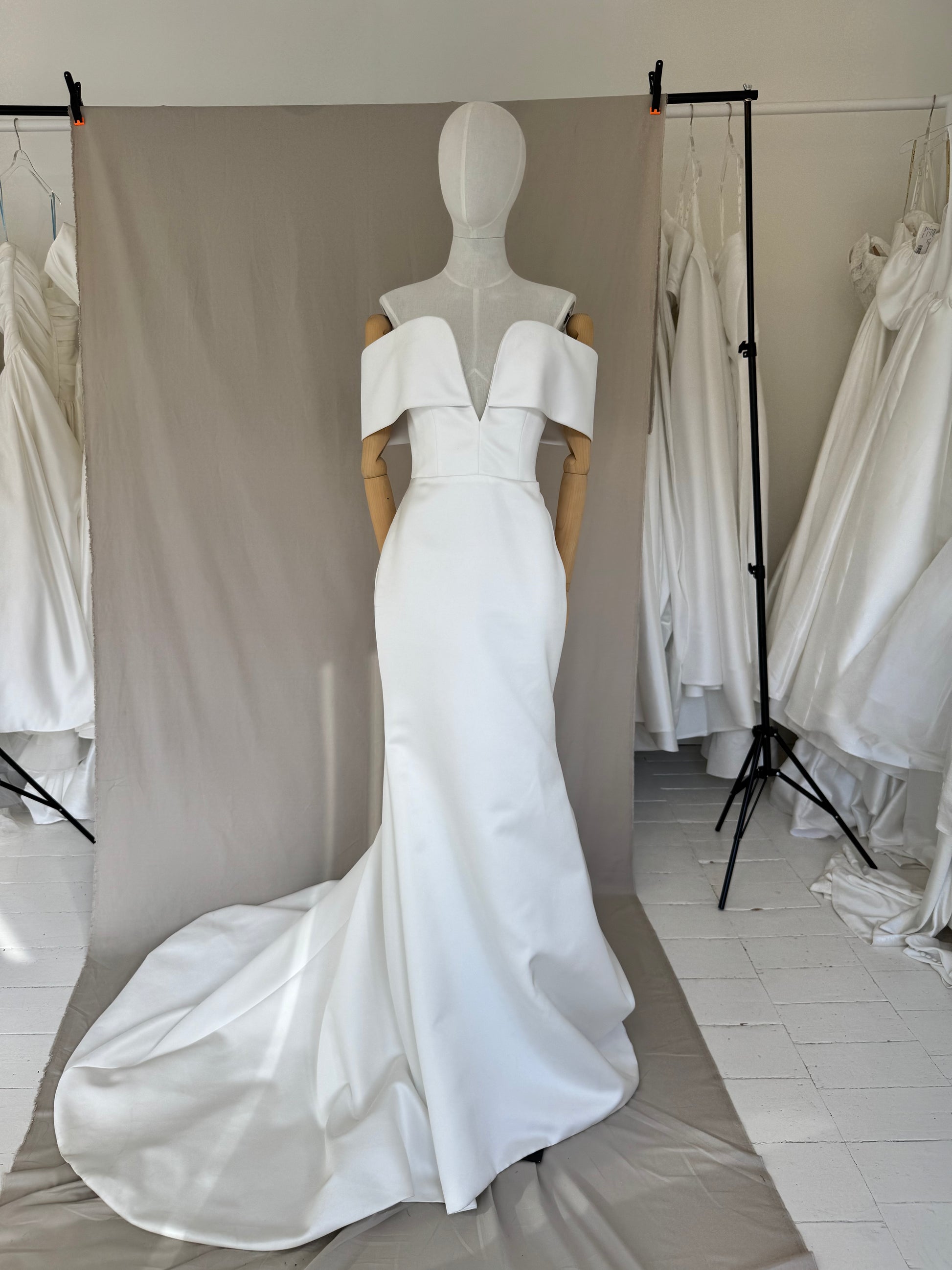 Move over screen sirens, Berkeley has arrived. Perfect for a statement red carpet or walk down the aisle, to Berkeley's deep v neckline, off shoulder arm band detail and fit and flare skirt will steal every scene. Pair with the Echo skirt for level-up drama.