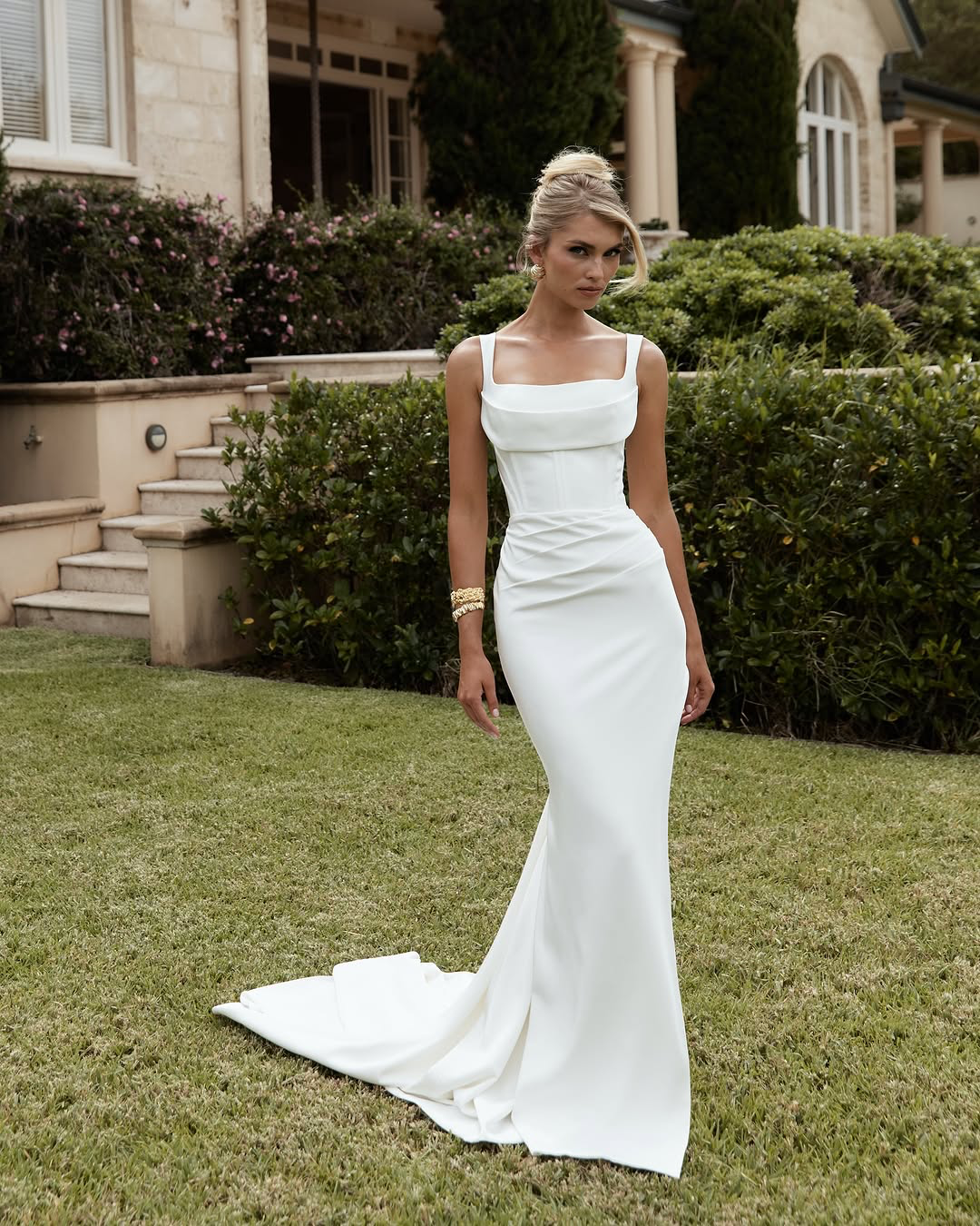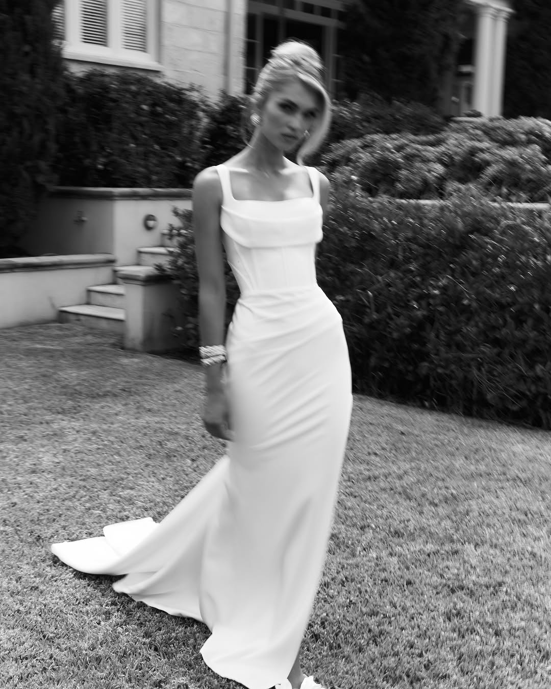The Bel Air gown embodies modern elegance with subtle edge—a harmonious blend of clean architectural lines, supportive structure, and a playful sense of drama. It’s ideal for brides who want to feel confident, refined, and effortlessly chic.