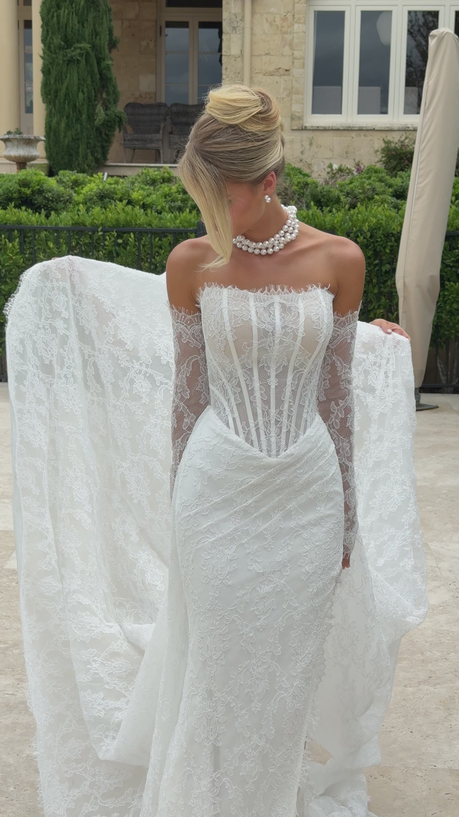 The beautiful Jane Hill Bridal 'Claremont' detachable lace overskirt to match Jane Hill bridal's Claremont gown, can be worn with multiple gowns from different designers.