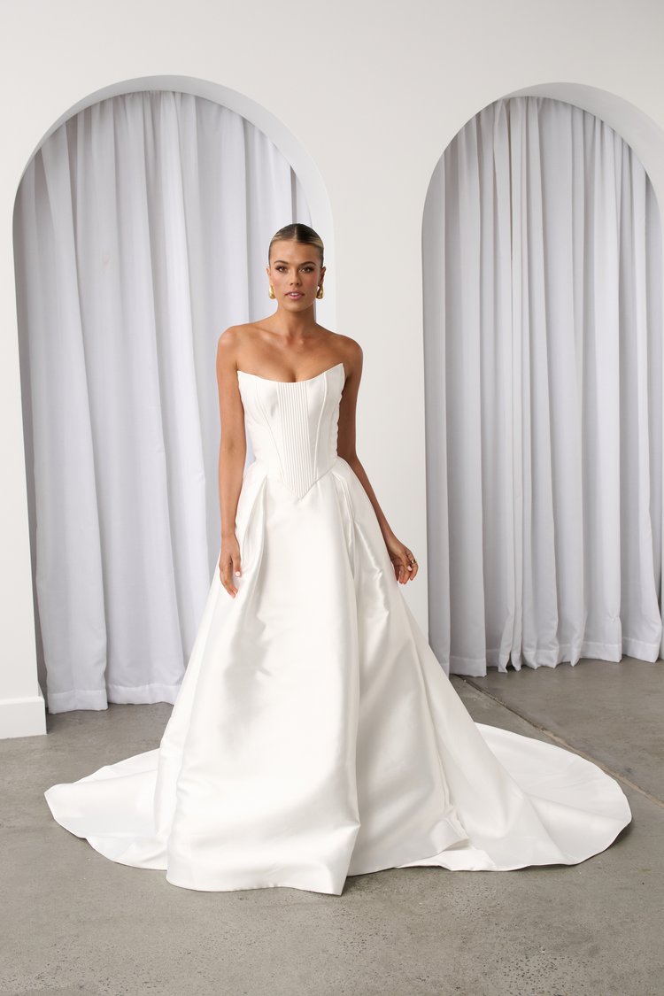 The corset of the moment, the timeless classic that is the dropped basque waist and Jane Hill Bridal’s Hopewell gown does not disappoint.