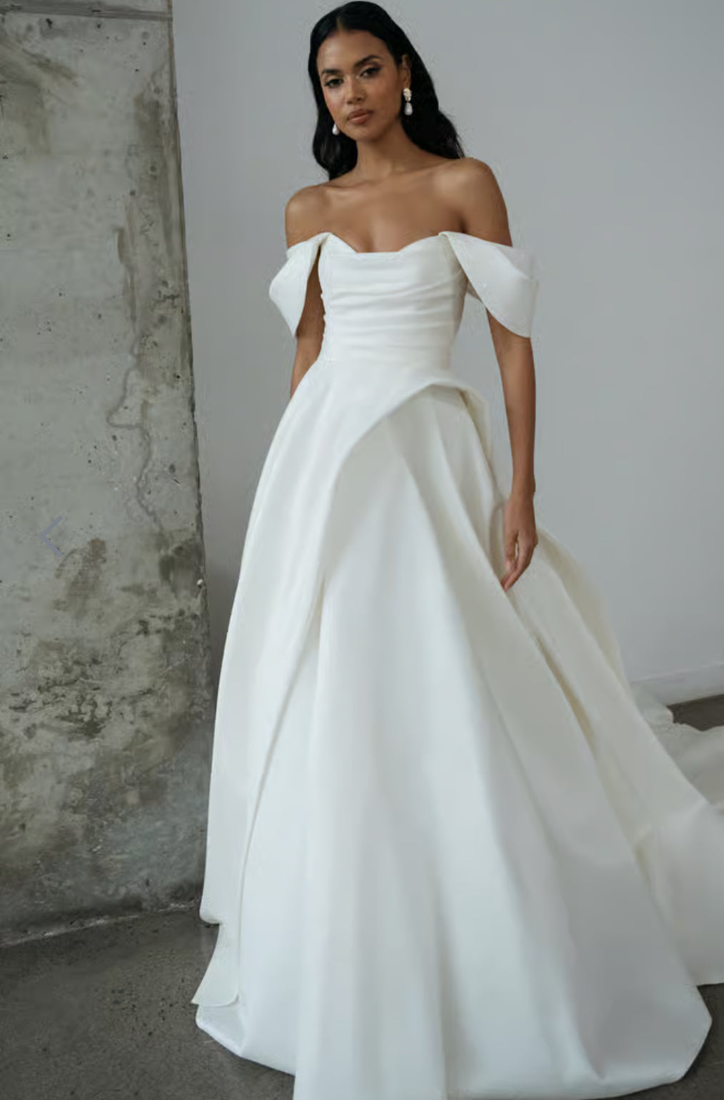 - Draped off the shoulder long sleeves