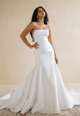 The Lucia gown, cut in our lustrously textured canopy taffeta, adds drama to a classic silhouette. A chic strapless neckline gives way to a paneled fit and flare skirt cut with extra flare at the sweep to highlight your shape.