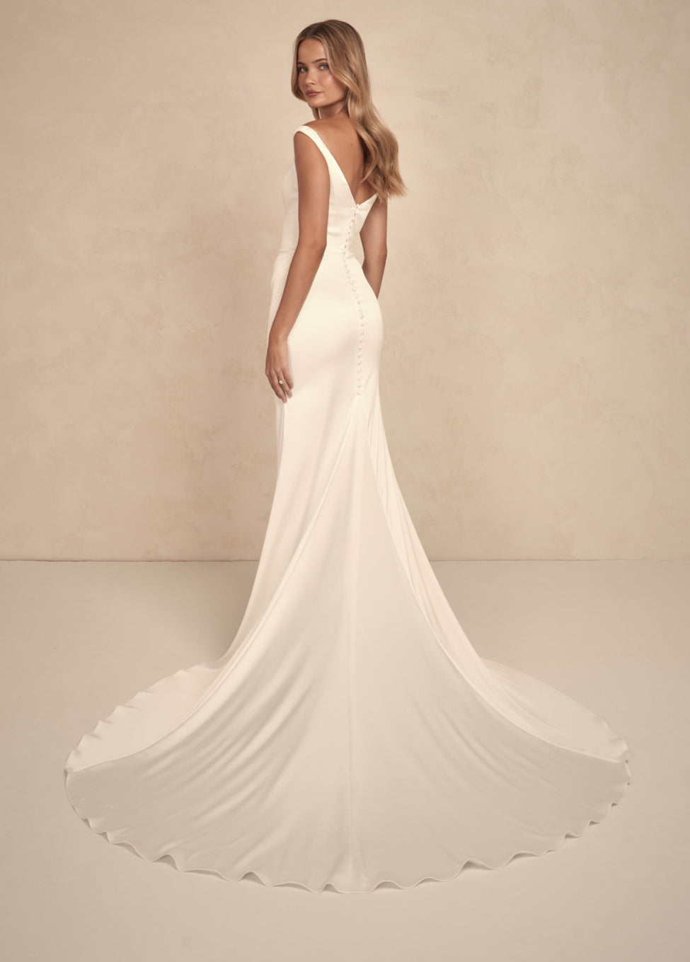 Isla exudes timeless elegance with a modern edge. Crafted from our signature satin, she features a luminous finish and fluid drape that moves with effortless grace. Her off-the-shoulder neckline and sculpted bodice beautifully enhance the silhouette, while soft draping at the hip adds a contemporary, flattering touch.